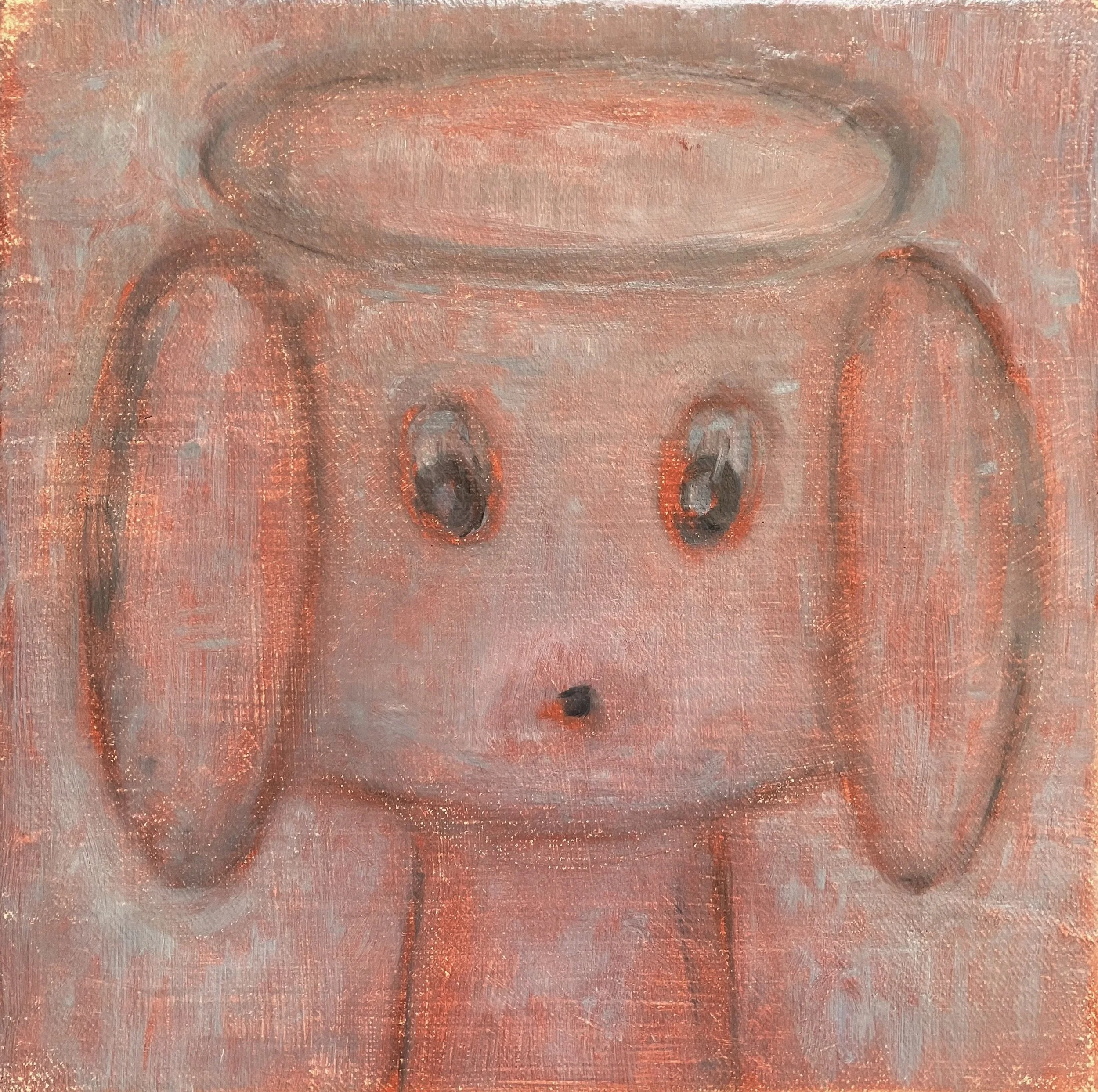 PUPPY ON APRICOT 2024 Oil on oil paper 20.3 x 25.3 cm